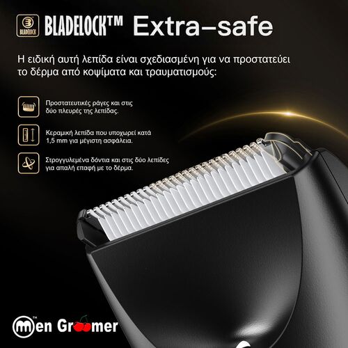 Αναβαθμίστε την καθημερινή σας ρουτίνα με τις Men Groomer μηχανές, επαναφορτιζόμενες, αδιάβροχες, έχουν σχεδιαστεί για απόλυτη ακρίβεια & άνεση. Με την προηγμένη τεχνολογία Bladelock, προσφέρουν ασφαλές και αποτελεσματικό ξύρισμα, ακόμα και στις πιο ευαίσθητες περιοχές.